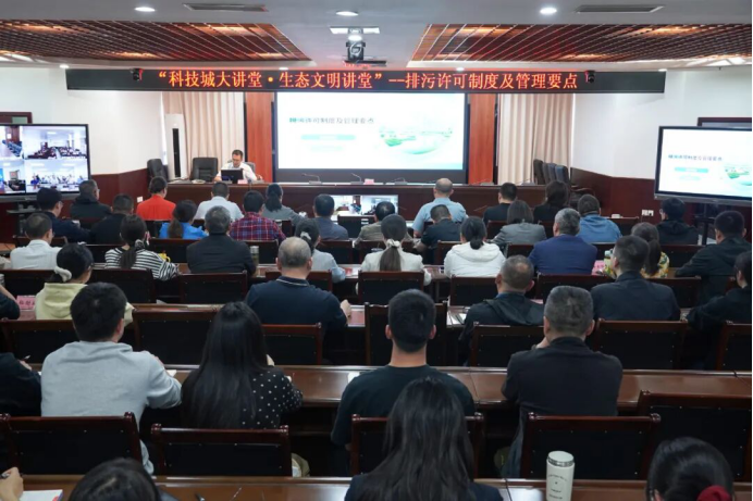 10月17日,“科技城大讲堂・生态文明讲堂”开讲,市生态环境局行政审批科科长何金国就《排污许可制度及管理要点》作专题讲座。局党组成员、机关党委书记吴晓红主持讲座。