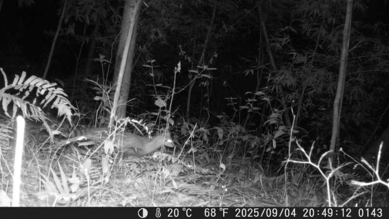 近日,四川省广安生态环境监测中心站、四川师范大学技术人员在邻水县开展2025年度生态质量样地监测过程中,意外捕捉到一只神秘小动物活动影像。经四川省生态环境监测总站及业内专家综合鉴定确认,该神秘“访客”竟是国家一级重点保护野生动物——小灵猫,这是广安市首次在生态质量样地监测中发现到该物种!