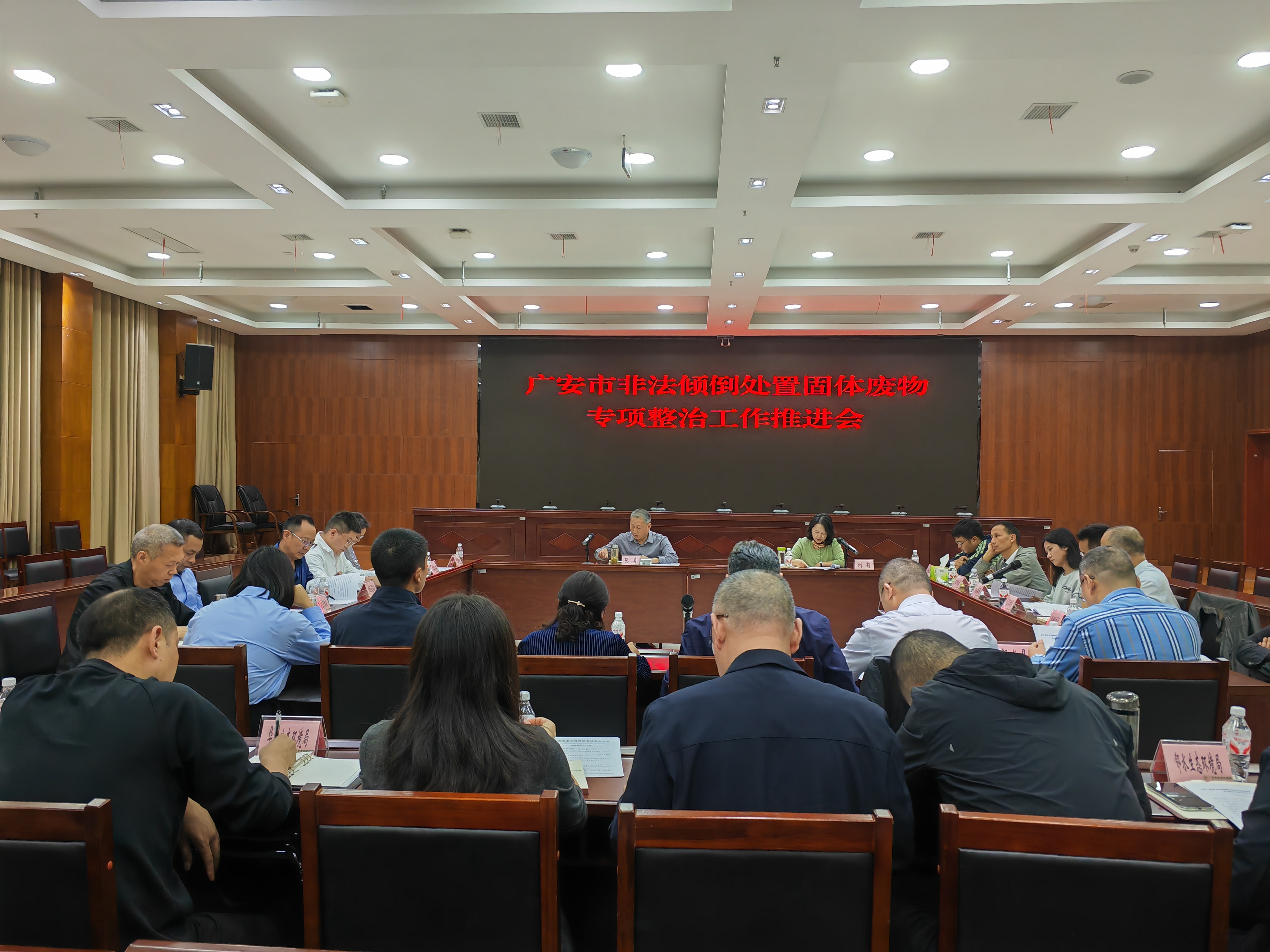 10月17日,广安市生态环境局召开非法倾倒处置固体废物专项整治工作推进会。市生态环境局党组书记、局长张勇出席会议并讲话,市生态环境局副局长刘莉通报全市专项整治和排查治理工作进展和存在的不足。各县(市、区)、广安经开区作了发言。