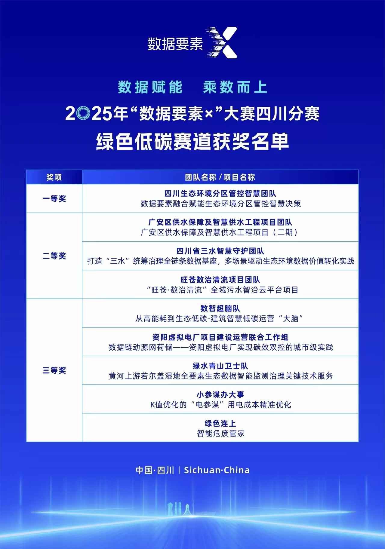 省环境信息中心与省环境评估中心联合战队斩获2025年“数据要素✕”大赛四川分赛绿色低碳赛道一等奖