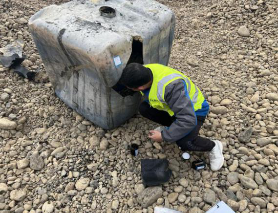 2023年2月28日,德阳市生态环境局接到群众举报,反映有不明车辆在德阳市天山南路三段与千岛湖西南侧200米交汇处的空地上擅自倾倒固体废物,执法人员立即赶赴现场调查,发现该空地一沙坑内倾倒了约40个装有黑色半固半液态物质的吨桶,部分吨桶已经破损,吨桶内物质流散于地面,德阳市生态环境局委托第三方监测机构对该倾倒物质样品进行了浸出毒性检测,检测结果显示苯并芘超标8.6倍,按照《危险废物鉴别标准通则》判定为危险废物。经计量称重,倾倒的危险废物总重量共计30.55吨。德阳市生态环境局对倾倒车辆展开调查,最终查明倾倒车辆属于成都鹏泽物流有限公司。