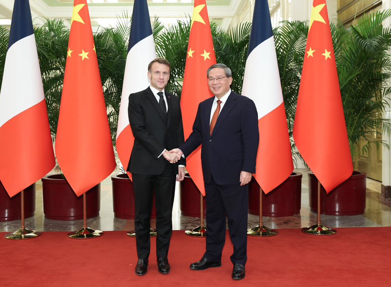 新华社北京12月4日电 12月4日下午,国务院总理李强在北京人民大会堂会见来华进行国事访问的法国总统马克龙。