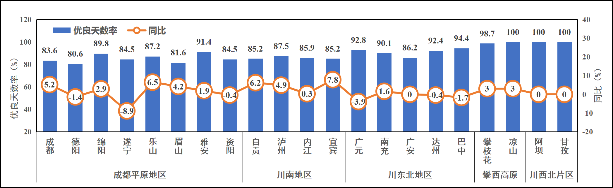 图3 2025年1-10月全省优良天数率及同比变化