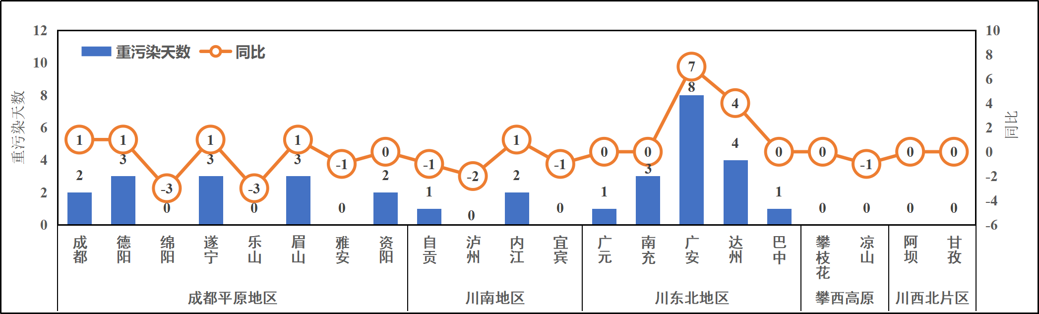 图4 2025年1-10月全省重污染天数及同比变化