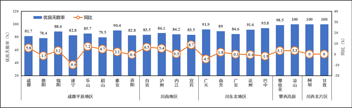 图1 2025年1-9月全省AQI级别占比及污染物浓度变化