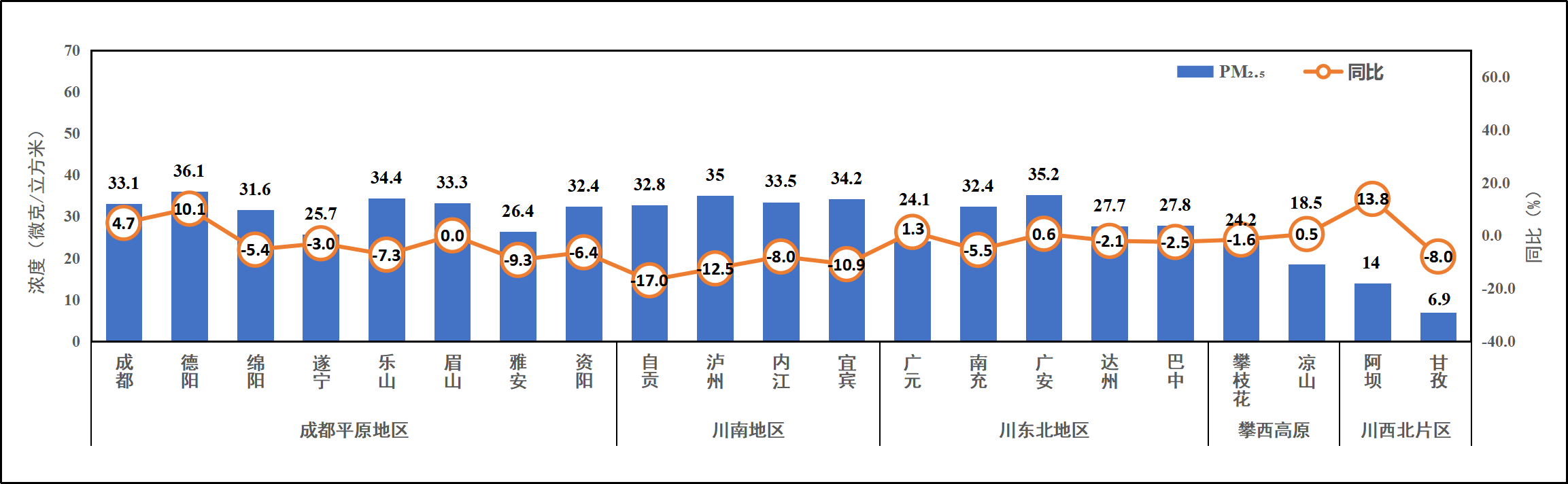 图2 2025年1-12月全省PM2.5浓度及同比变化