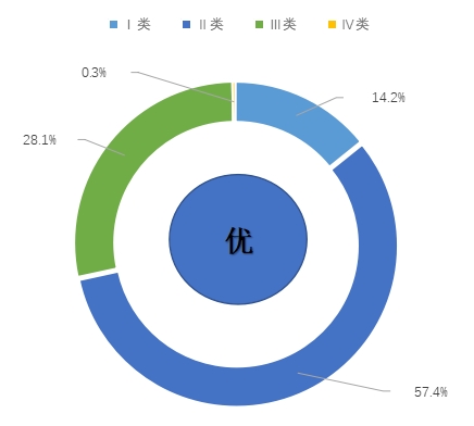 2025年1-9月,全省总计345个考核断面(国考203个,省考142个)中有344个断面为优良水质(Ⅰ~Ⅲ类),所占比例为99.7%,IV类水质断面1个,所占比例为0.3%,无V类、劣V类水质断面。
