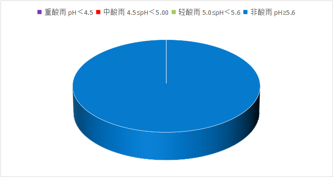 2025年12月全省21个市(州)政府所在城市中,仅有成都市、广元市、宜宾市、广安市4个城市出现了有效降水,其余城市均未出现有效降水,全省降水pH值在6.41~6.84、平均值为6.51,酸雨发生频率为0.0%,所有城市均为非酸雨城市。