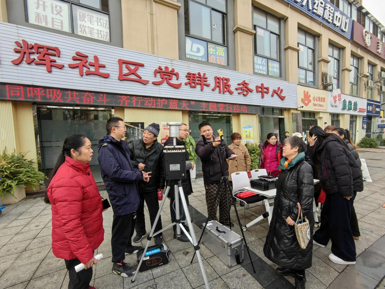 志愿服务——构筑基层环境治理的“长效纽带”。活动中,监测总站党员、青年志愿者与社区工作人员组建“蓝天攻坚”志愿服务队,开展多元环保服务。志愿者引导居民操作便携式监测设备,参与互动体验;联合社区网格员排查餐饮油烟、装修扬尘等突出问题,开展现场宣传与劝导;活动还通过知识问答、心得分享等形式提升居民参与热情,推动形成“排查—整改—回访”的长效治理机制。