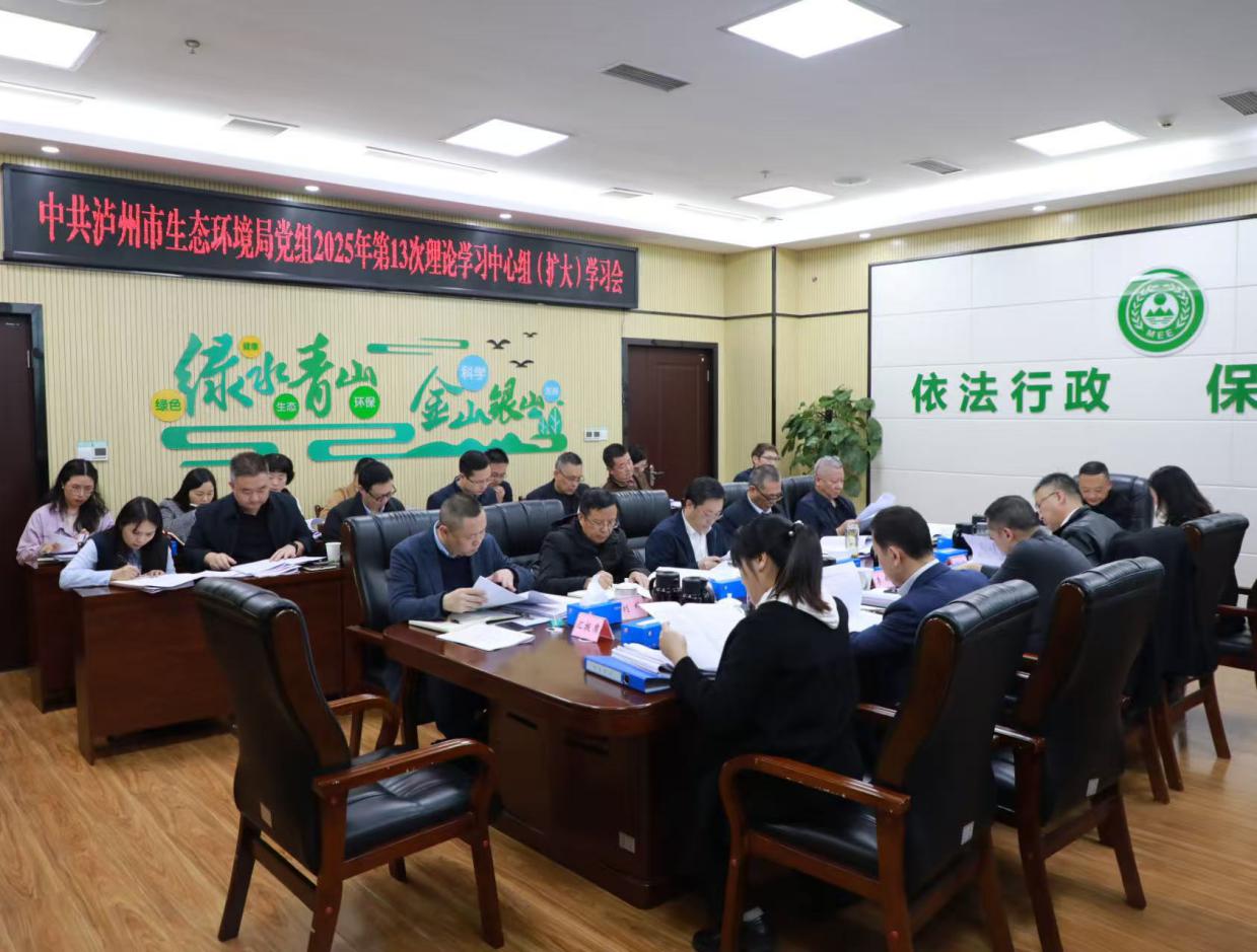 11月14日,泸州市生态环境局党组召开理论学习中心组(扩大)学习会,专题学习研讨党的二十届四中全会精神。局党组书记、局长何刚主持会议并讲话,与会局领导班子成员结合思想认识和工作实际交流学习体会。