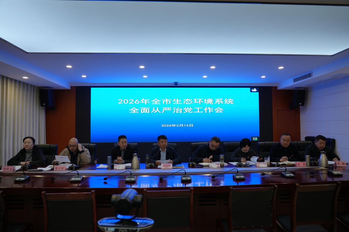 2月14日,宜宾市生态环境系统2026年全面从严治党工作会议召开。局党委书记、局长贾利华主持召开会议。局领导班子成员,四级调研员,四川省宜宾生态环境监测中心站主要负责人,驻局纪检监察组全体人员,各县(区)生态环境局主要负责人,局机关各科(室)、直属单位主要负责人、副科级及以上干部,机关纪委委员、各党支部委员在主会场参会,会议以视频形式开到各县(区)生态环境局。