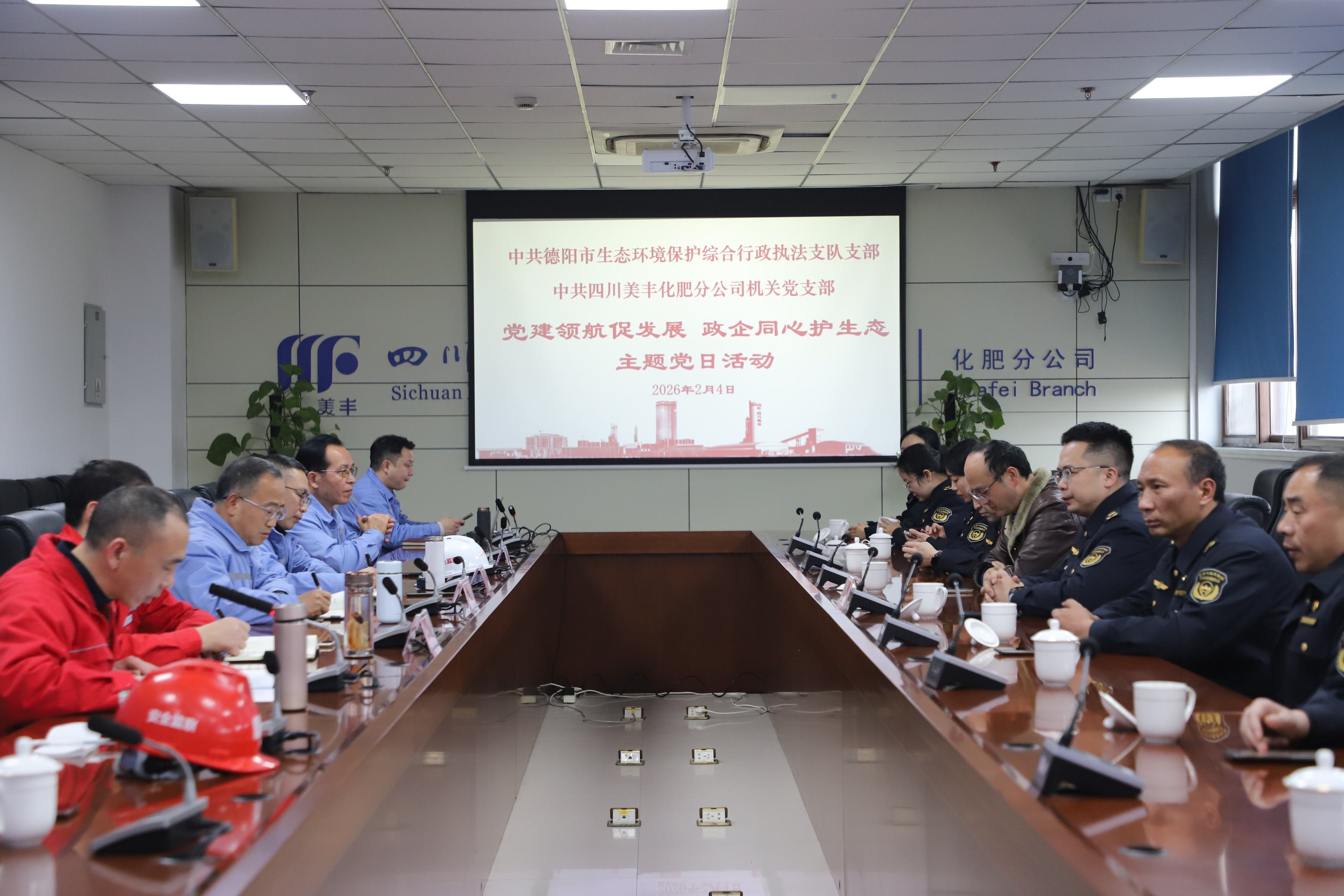 为深化党建与业务融合,构建政企协同新格局,2月4日下午,德阳市生态环境保护综合行政执法支队党支部与四川美丰化工股份有限公司化肥分公司机关党支部联合开展了以“党建领航促发展 政企同心护生态”为主题的党日活动,通过实地参观、政策解读与座谈交流,共同探索党建引领下生态环保与安全生产深度融合的新路径。