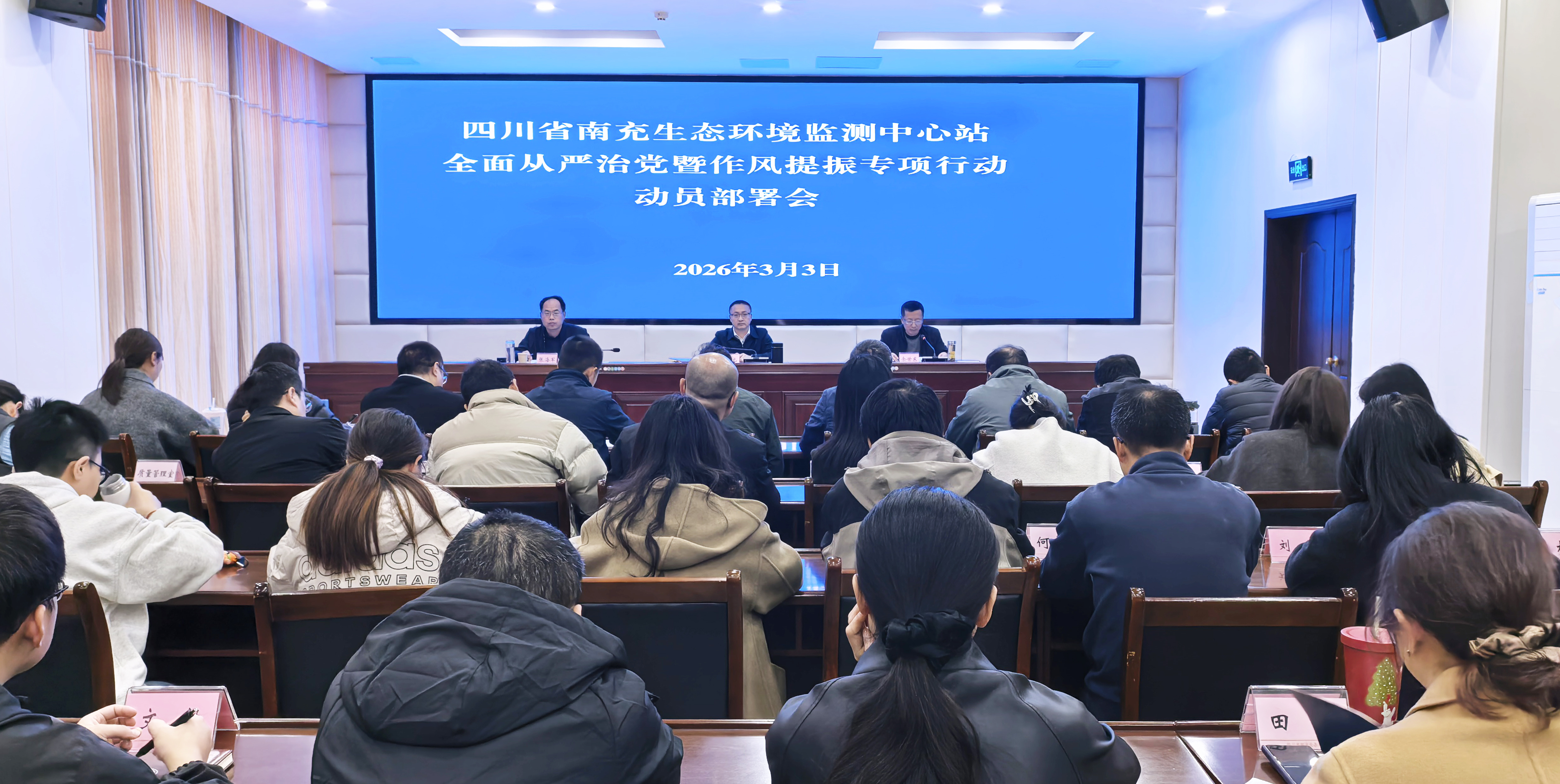 强作风、开新局、促发展。3月3日上午,四川省南充生态环境监测中心站召开全面从严治党暨作风提振专项行动动员部署会,旨在树立“风向标”、吹响“集结号”,动员全站上下以“开局即冲刺、起步即决战”的姿态,把作风建设成效转化为推动高质量发展的强大动力,拼出“开门红”,拼出全年胜。