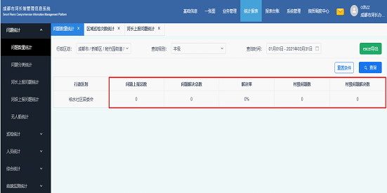 图3成都市河长制管理信息系统显示,2020年1月至2021年3月31日柏水社区村级河长上报问题数为零