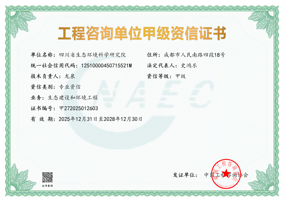 岁末传捷报,2026奋进启新程,四川省生态环境科学研究院成功获批工程咨询单位甲级资信证书(生态建设和环境工程领域)。此次从乙级到甲级的跨越,标志着我院综合服务能力跻身行业前列,为服务生态文明建设注入更强动力。