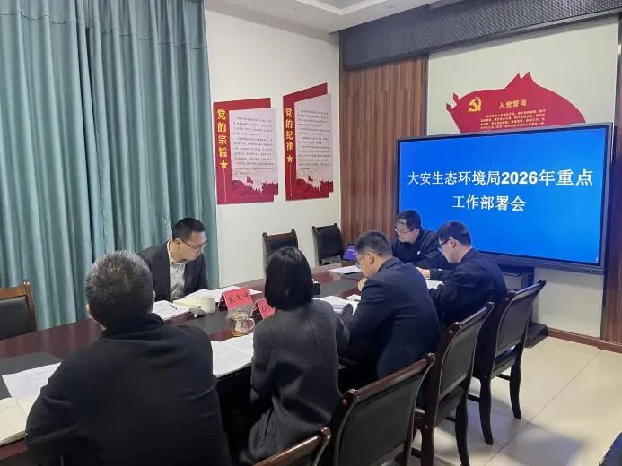 沿滩生态环境局主要负责同志主持召开职工大会,对2026年重点工作进行动员部署;分管负责同志带队巡查釜溪河流域水质;执法人员深入排查环保安全隐患,为企业安全有序复工复产保驾护航,同步检查危废经营单位,严守环境安全底线。