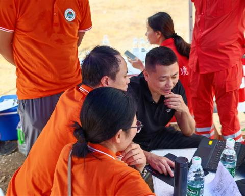 专家、裁判讨论监测结果              德绵监测站站长就双方监测技术进行讨论