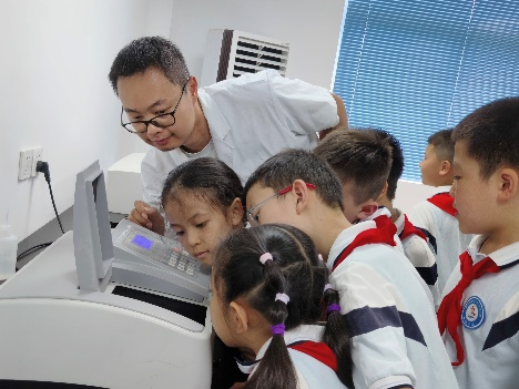 活动伊始,讲解老师首先对德阳生态环境监测中心站进行了简要介绍,并用通俗易懂的语言,向在场的学生、老师和家长们详细讲解了生态环境要素的构成,以及生态环境监测工作的主要内容。随后带领学生们重点参观了监测实验室的应急设备间、采样准备间、重金属分析室以及分光光度实验室,让学生们详细了解了各项仪器设备的监测项目和实验分析原理,并开展风速仪、噪声声级计、PH试纸测试酸碱度等实践操作。同学们争先恐后地参与小实验,在亲手操作的过程中,不仅掌握了风速仪噪声仪基本使用技巧,更对环境监测数据的获取过程有了深刻的体会,现场学习氛围十分浓厚。最后通过观看德阳市大气颗粒物与光化学组分站以及水质自动监测站的视频介绍,更对科技力量支撑生态环境监测和守护城市生态安全的重要意义有了更清晰、深刻的了解。
