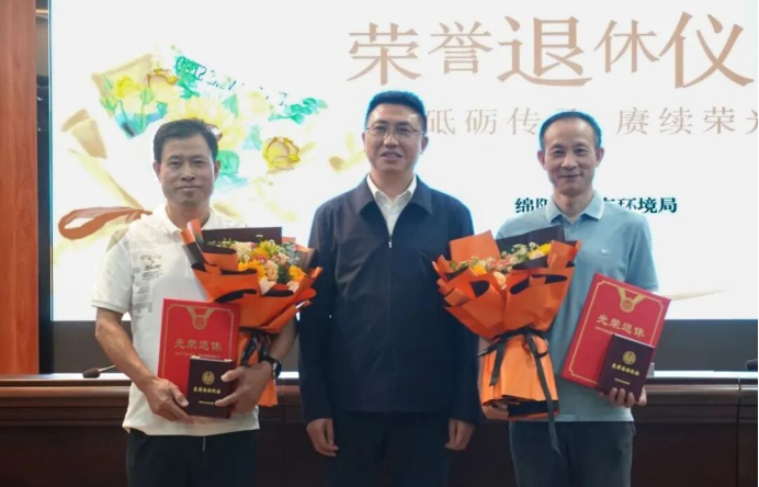 郑开强代表局党组向两位同志颁发光荣退休证书,并送上美好祝愿。他指出,退休,是职业生涯的光荣收官,也是人生新篇的温暖启航,希望退休同志永葆共产党员的政治本色,延续“环保铁军”的担当与情怀,离岗不离党、退休不褪色,一如既往地关心、支持和参与绵阳生态环境保护事业。全体在职干部要紧握“接力棒”,走好“奋斗路”,传承初心、担当使命,在实干中增长才干,在奋斗中践行价值,以更高标准打好蓝天、碧水、净土保卫战,努力推动绵阳生态环境质量持续改善,为加快建设美丽绵阳、绘就中国式现代化万千气象的绵阳图景作出新的更大贡献。