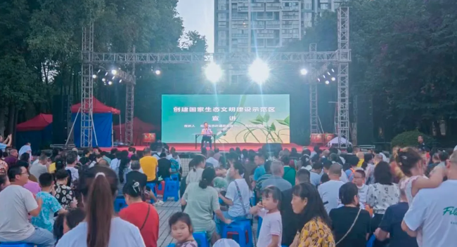9月6日晚,眉山市生态环境志愿宣讲队组织志愿者深入东坡区金罗马社区开展习近平生态文明思想进社区宣传活动,邀请到东坡生态环境局局长李欣雨现场作专题讲座。
