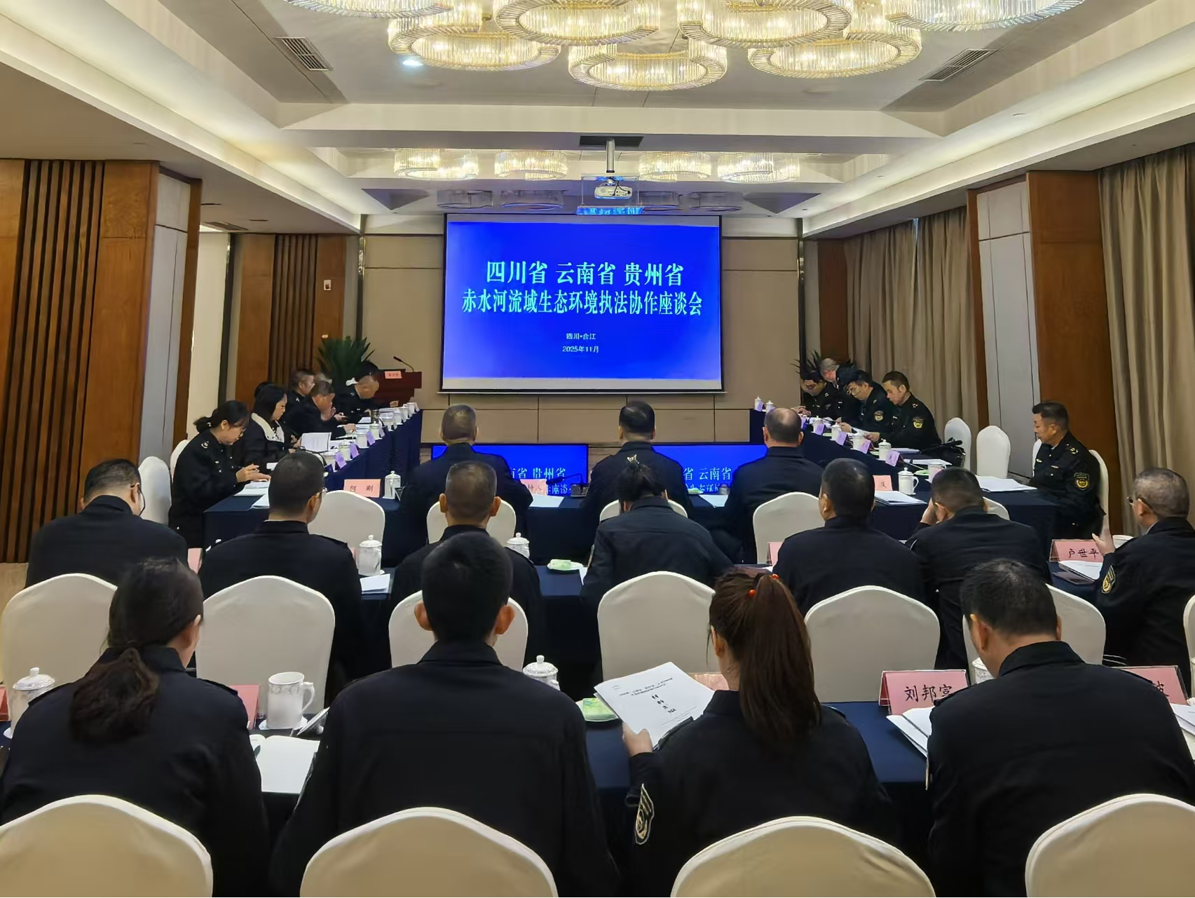 11月20日,川滇黔赤水河流域执法协作座谈会在四川省泸州市召开。会议由四川省生态环境保护综合行政执法总队牵头组织,云南省生态环境执法局、贵州省环境监察局主要负责同志率队出席,三省毗邻市(州)、县(区)级执法机构相关负责人共同参会。