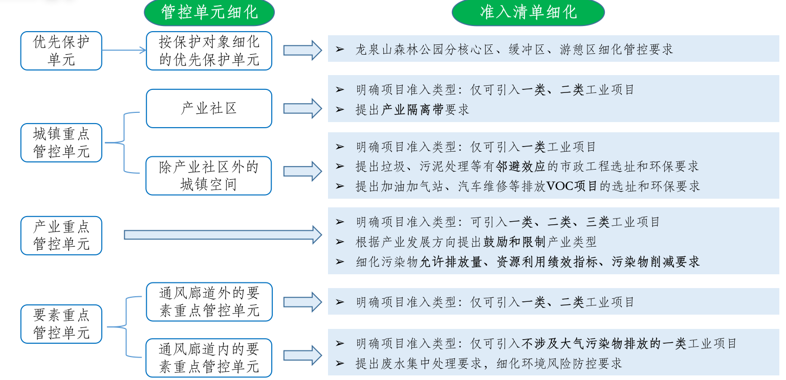 一是细化管控单元和准入清单,提升管控要求的精准性和环境属性。结合国土空间规划,统筹新区工业红蓝线、产业集聚区、城镇空间分布格局,细化生态环境管控单元,单元个数增加40%。“量体裁衣”提出每个单元禁止、限制和允许准入行业和布局约束、污染物排放管控等差异化管控措施,聚焦解决新区发展阶段面临的产业聚集区、重大基础设施“邻避”问题和噪声污染防控问题等,进一步校准生态环境准入的“绿色标尺”,优化产城融合空间布局,保障人居环境安全。