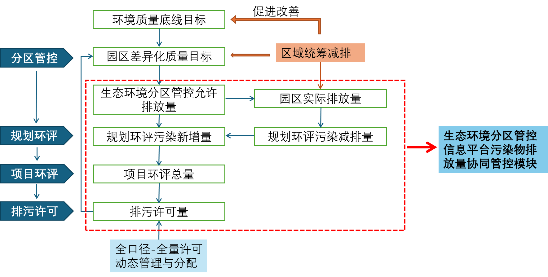 图2 分区管控平台污染物排放量协同管控模块支撑以污染物排放管控为主线的全过程环境管理