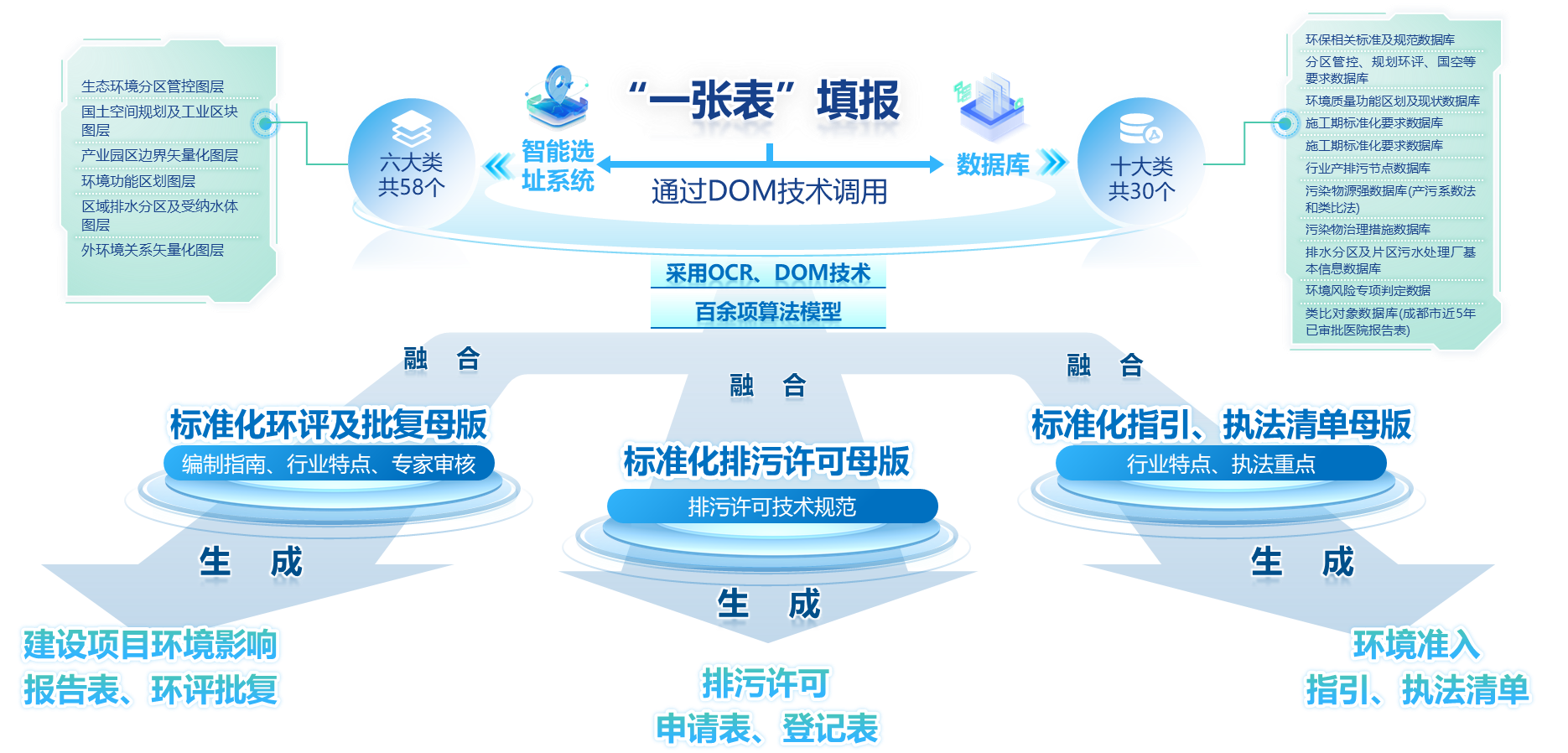 三是依托分区管控平台统揽制度衔接联动,串联事前事中事后全过程污染管控。在“蓉环智评系统”中集成分区管控智能选址、污染物排放量协同管控、环评文件标准化编制和智能化审批、排污许可智能填报、执法监管等内置模块,实现企业“选址研判-污染物排放量管控-项目环评措施-许可控排污要求-执法清单”的数据信息,从分区管控-环评-许可-执法监管制度间自上而下流转,以分区管控信息化平台为载体推动环境管理优化和效能提升,支撑建立分区管控允许排放量、规划及项目环评预测量、许可排放量动态管理的工作路径,为探索以污染物排放管控为主线的全过程环境管理奠定基础。