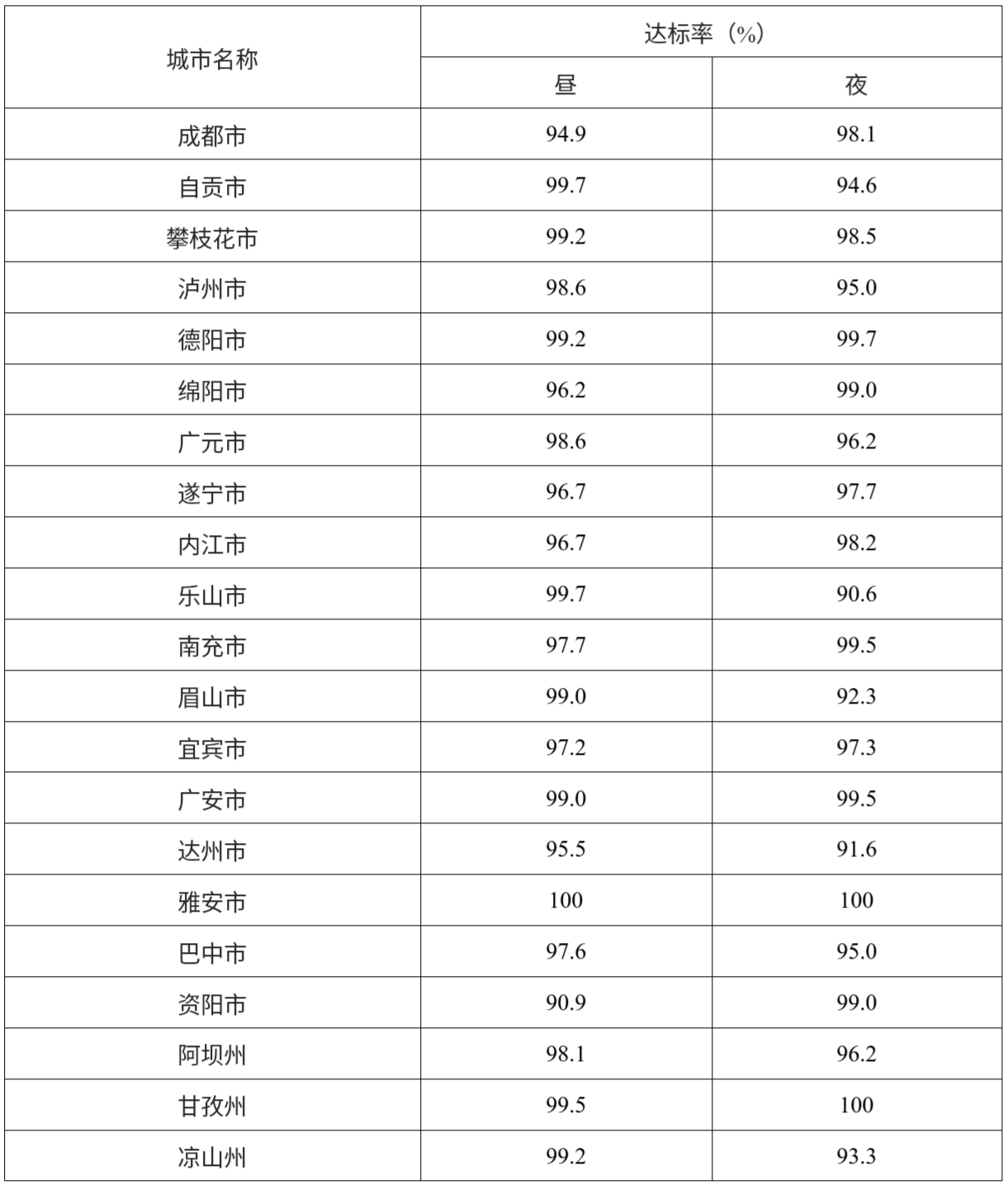 表1-1 2025年11月四川省功能区声环境质量状况