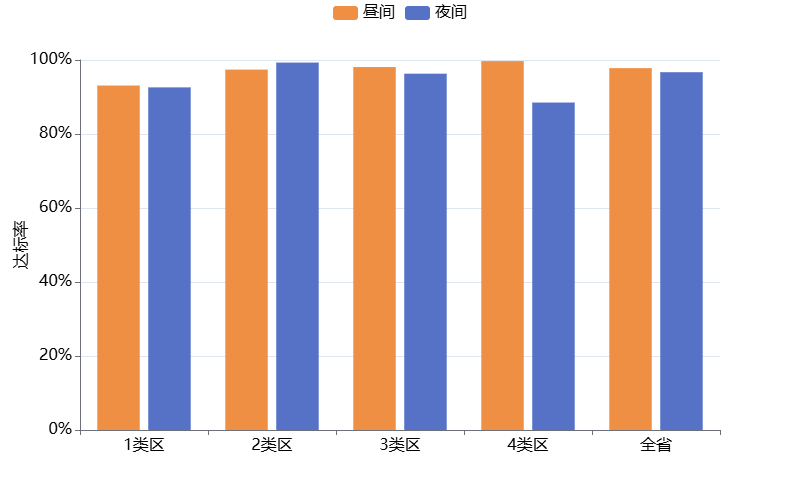2025年11月四川省功能区声环境质量昼间达标率为97.8%,夜间达标率为96.7%,详见表1-1、图1-1。