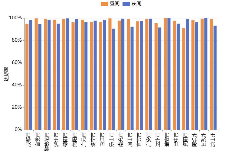 2025年11月各地级城市达标率状况详见表2-1、图2-1。