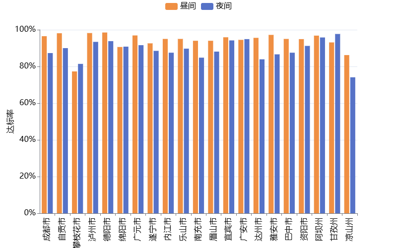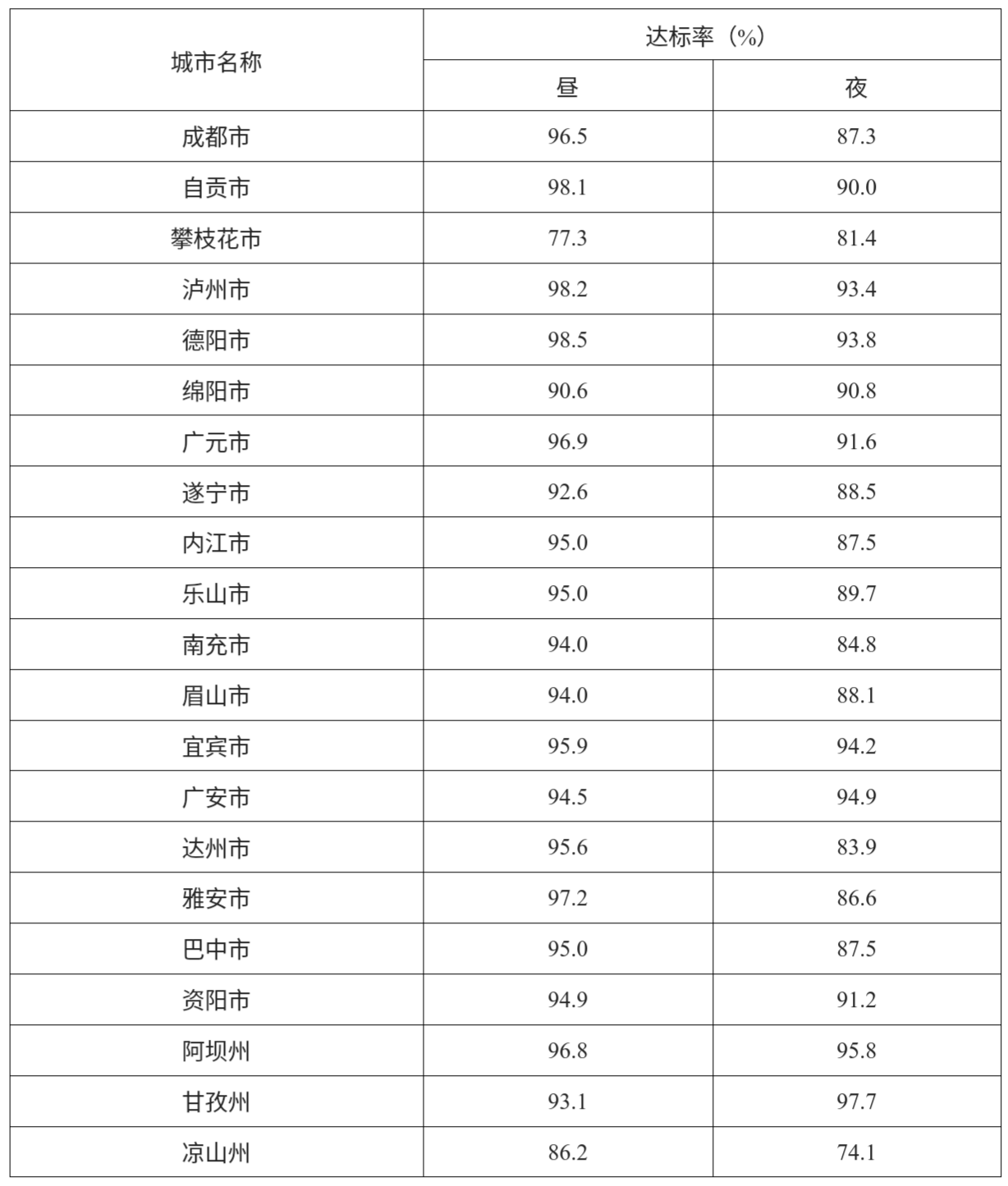 2025年1月四川省功能区声环境质量昼间达标率为94.1%,夜间达标率为89.2%,详见表1-1、图1-1。