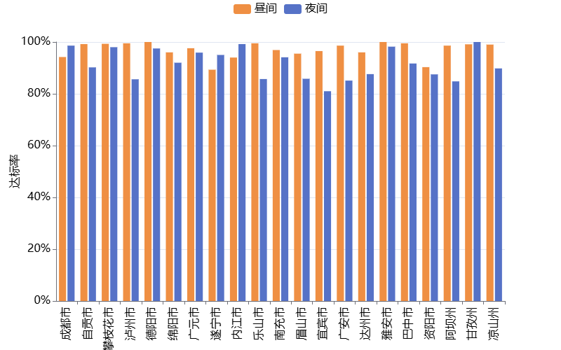 2025年10月四川省功能区声环境质量昼间达标率为97.1%,夜间达标率为91.6%,详见表1-1、图1-1。