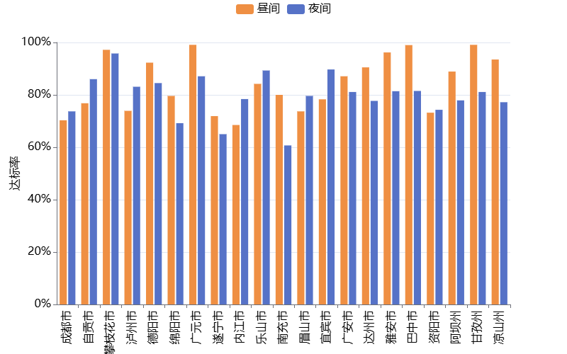 2025年7月四川省功能区声环境质量昼间达标率为84.4%,夜间达标率为79.7%,详见表1-1、图1-1。