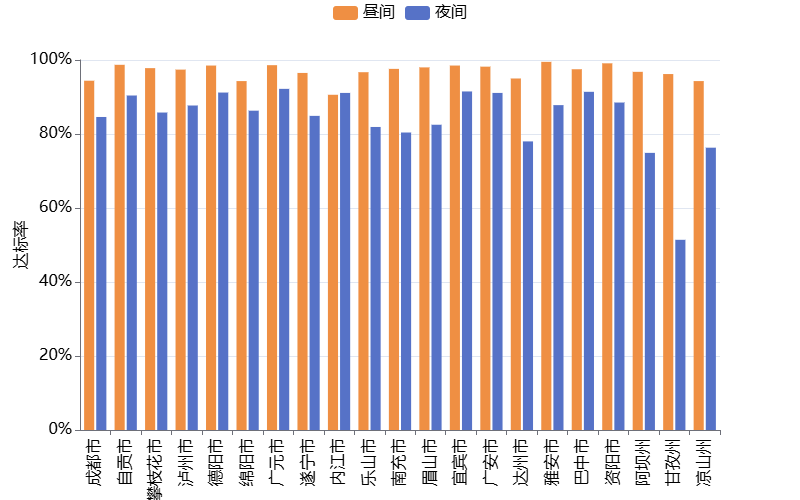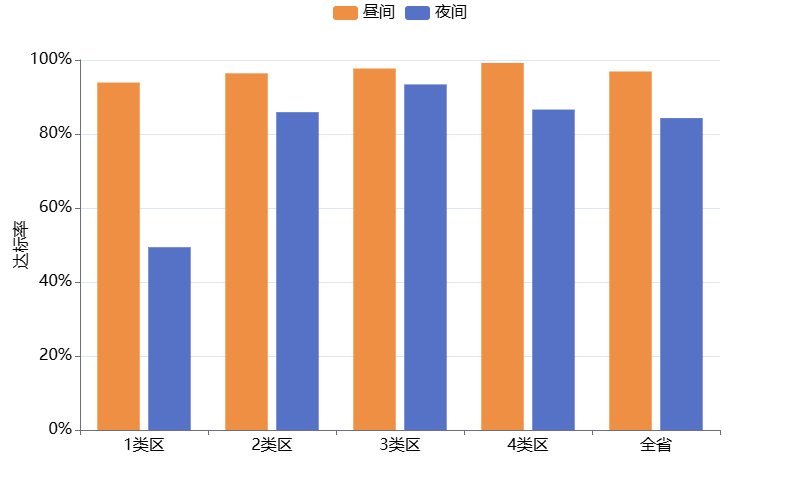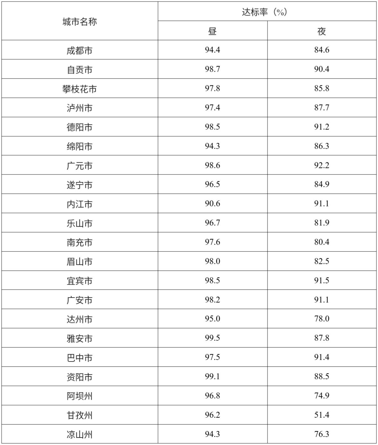 2025年5月四川省功能区声环境质量昼间达标率为96.9%,夜间达标率为84.3%,详见表1-1、图1-1。